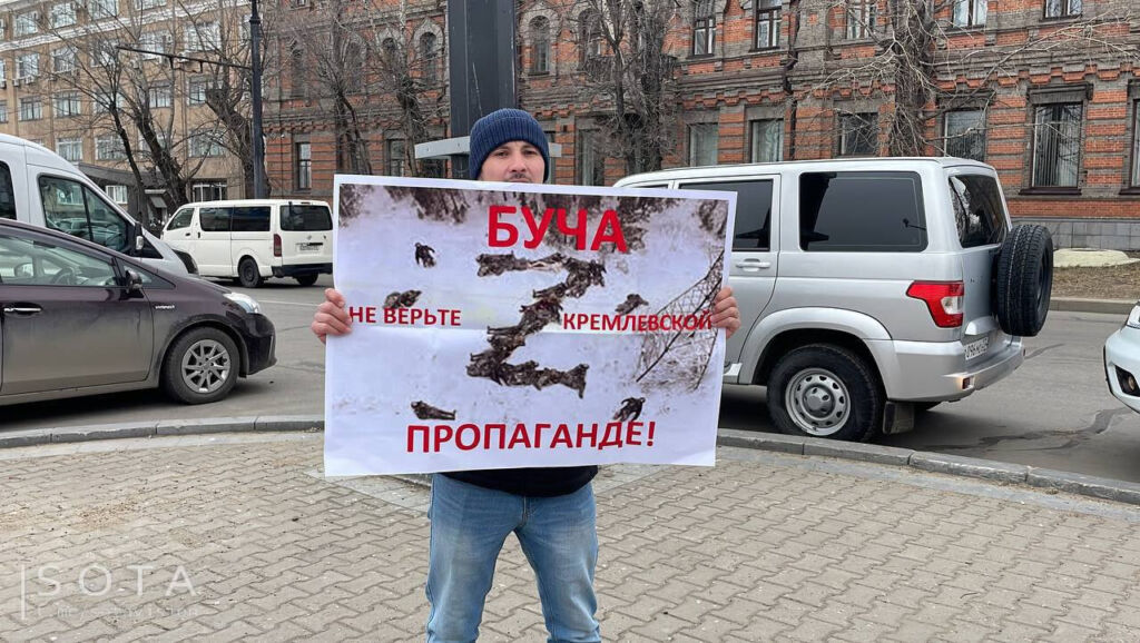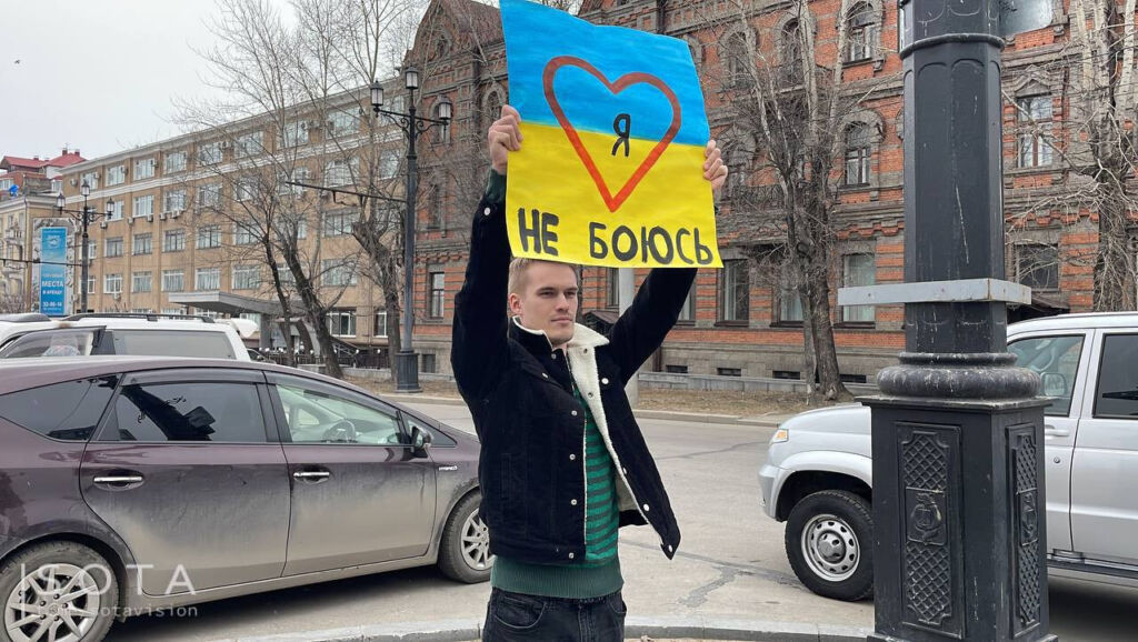 В Хабаровске живет общественный активист Николай. Он всегда такой очень спокойный и сдержанный. У него нет ноги, он ходит с тростью. 30 марта он вышел на одну из площадей Хабаровска с плакатом «Украина, ты права!» и кричал «Нет [запрещенное в РФ слово]!». За это Центральный районный суд приговорил его к штрафу по «новой» статье за «дискредитацию Вооруженных Сил». Во время разбирательства защита требовала провести психолого-лингвистическую экспертизу и проверить, действительно ли лозунг «Нет [запрещенное в РФ слово]» кого-то дискредитирует, но суд решил, что факт дискредитации абсолютно очевиден.