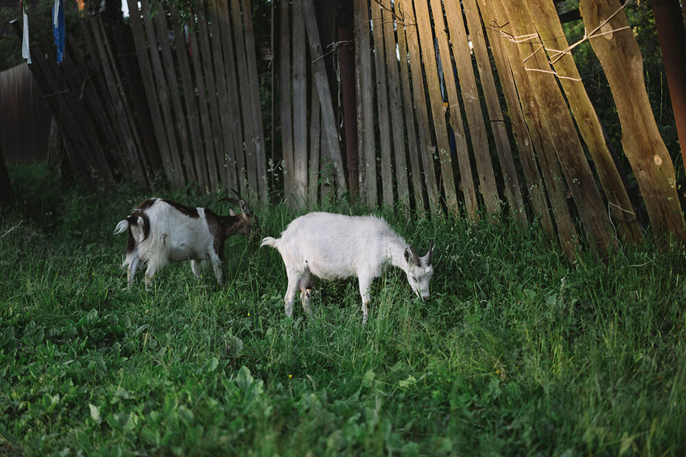 Постарше мы, бывало, воровали. В лагерях идем в какую-нибудь деревню, на веревках одежда сушится — мы ее себе. Один раз пошли купаться — и видим: [спортивный] костюм и полотенце висят на веревке. Такой клад! Маринка говорит: «Давай мне костюм, а тебе полотенце. Стой на шухере — я ворую». Ну она пошустрее меня была. Короче, украла. Довольные пришли.