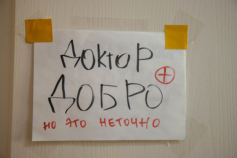 Таблички на двери одного из кабинетов — «Штаб мысли» и «Доктор Добро» — выдают его хозяйку: главного редактора саратовских «Свободных».
