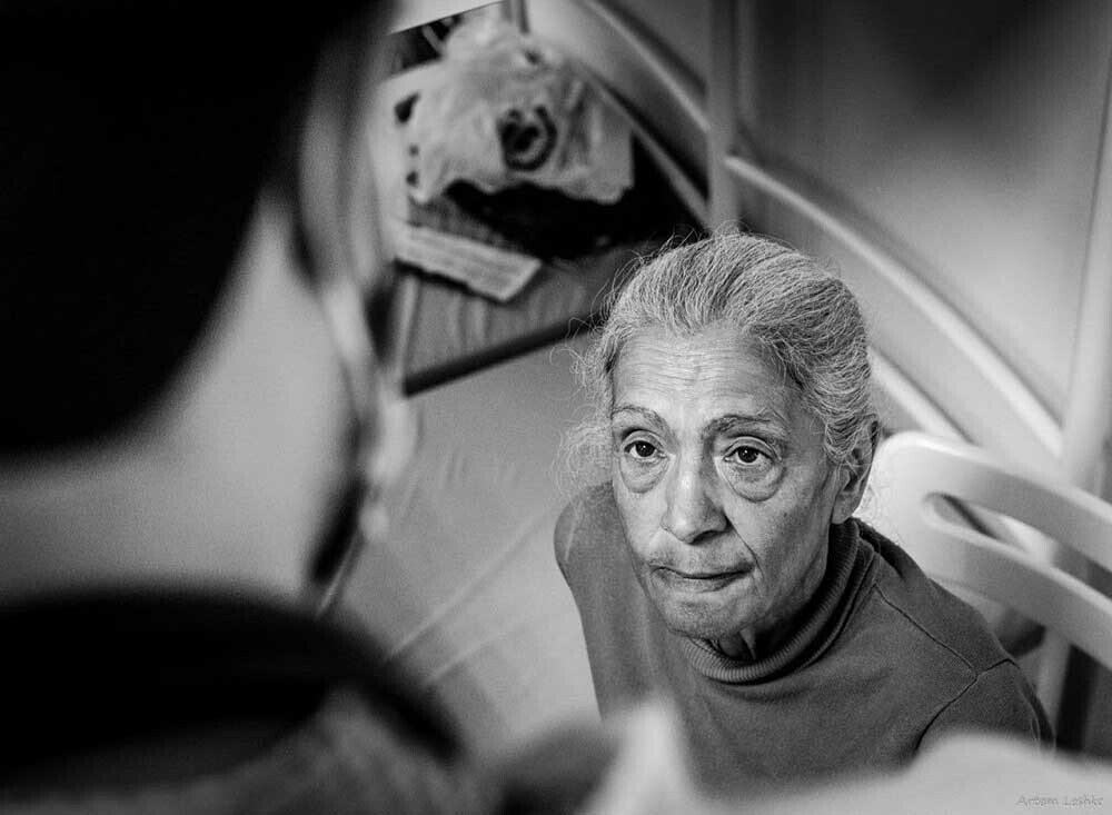 «Наталья Ивановна! — кричит Татьяна в ворох тряпья. — Как здоровье, как нога твоя?» — «Чего?» — продолжая лежать лицом к стене, вяло реагирует женщина. Из-за тусклого освещения мне почти не удается ее рассмотреть: вижу только протертый «бабушкин» халат и выбившуюся из-под платка прядь седых волос на подушке. «Как самочувствие? Врача надо тебе?» — повышает голос Татьяна. «Хорошо бы», — дребезжит Наталья Ивановна. «И мне врача…» — раздается голос из угла комнаты.