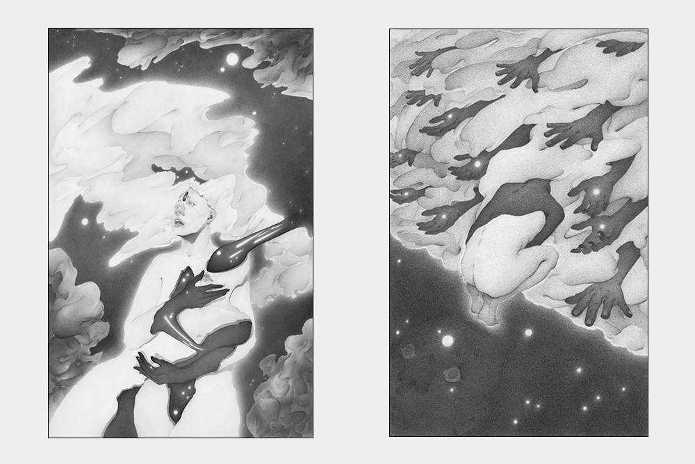Последние три-четыре года я искала собственный язык образов, занималась психотерапией и изучала философию, чтобы помочь себе и людям преодолеть этот кризис. Искала что-то, что помогло бы нам надстроить над интернет-пространством и его правилами собственное понимание отношений и мира. И пришла к выводу, что помочь в этом могут творческие практики. При этом рисунок должен быть связан с переживанием эмоций — так он будет включать и развивать эмпатию у зрителя и наводить его на вопросы о ценностях и смысле жизни. Вскоре все эти идеи собрались в проект, где мы объединились с моим супругом, композитором: вместе мы делаем видео, где есть визуальная и аудиосоставляющая, — Self-Art Metaperformance.