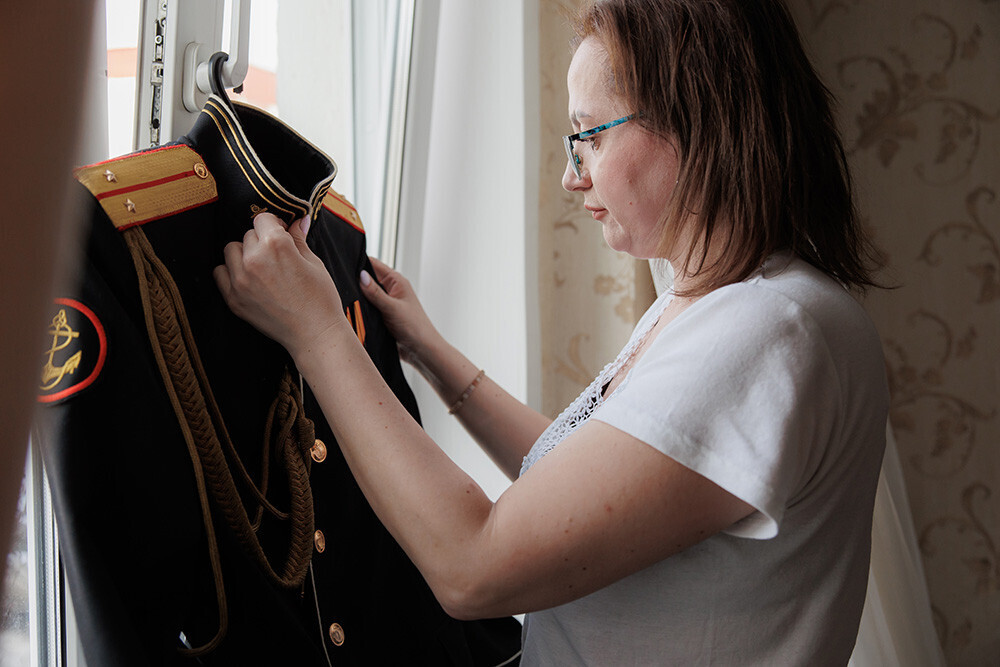 Небольшой коридор новой квартиры почти целиком занимает шкаф-купе, забитый вещами Дениса, — Татьяна хранит в коробках медали, детские рисунки, грамоты и фотографии сына. На вешалках, аккуратно упакованные в чехлы от пыли, висят китель Дениса, его футбольная форма.