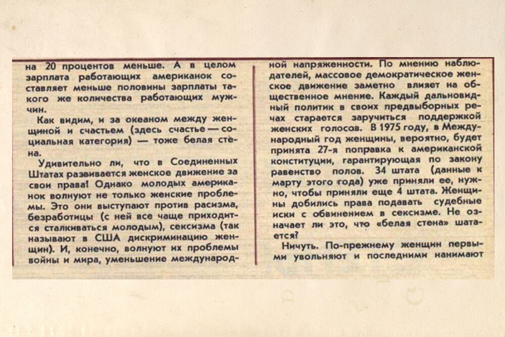 А уже в 1975 году журнал «Работница», выходивший многомиллионными тиражами, сообщал о борьбе американок против «сексизма».