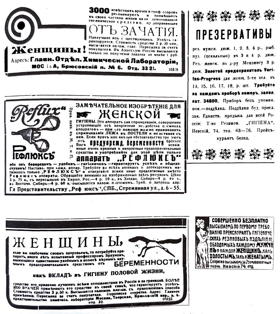 Аудиторией рекламы средств предохранения и специальной литературы в Российской империи были исключительно женщины.