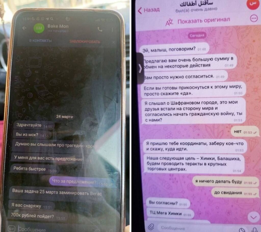 Началась паника. Появлялись все новые и новые сообщения, в которых «вербовщики» предлагали школьникам атаковать общественные места в Москве, Петрозаводске, Миассе, Чистополе, Смоленске, Пскове, Крыму и Луганске и во многих других городах. В текстах назывались разные объекты и суммы.