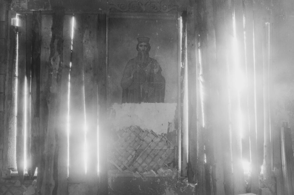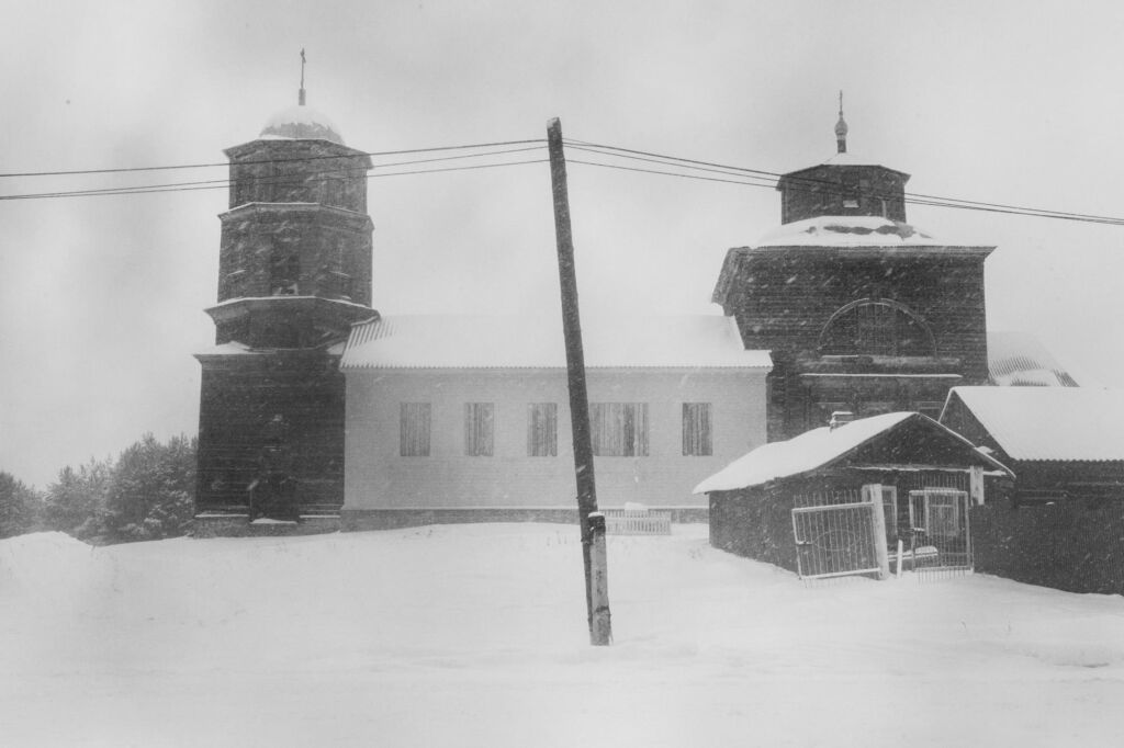 По правую руку — черный остов восстанавливаемой церкви. З., к которой мы приехали, оживляется. Говорит, храм строили Строгановы. З. — церковная староста, помогает собирать деньги на восстановление.