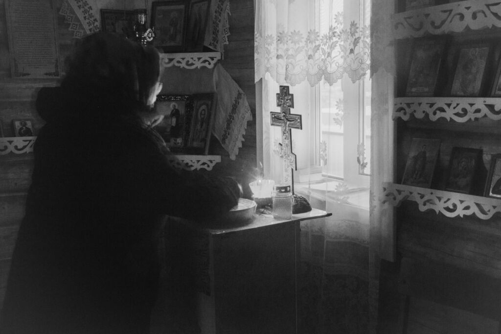В часовне отдает тепло протопленная буржуйка. На столе стоит термос с чаем. В тарелке — шанежки. О. Н. пекла для мужа. Когда приезжают туристы, шанежки — обязательное дело. О. Н. рассказывает приезжим о значении местных поясных узоров, о соседстве коми-пермяков и русских, об устройстве домов. И не рассказывает, что в ковид «держала» село, отпаивая соседей травами. Что дар получила случайно, когда увязалась в баню за матерью и старшей сестрой, которой было завещано знание.