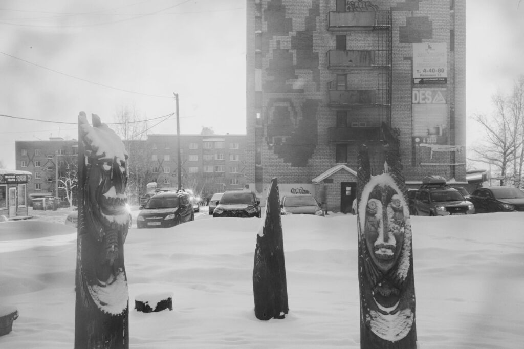 Девушка за кассой безошибочно узнает в нас приезжих: рассказывает про скульптуры с лешими, памятник лаптям, театр и другие кудымкарские достопримечательности. Услышав, что приехали мы в поисках икотки, отправляет в Малую Серву, к самой «медийной» из местных икотниц — Анне Александровне.