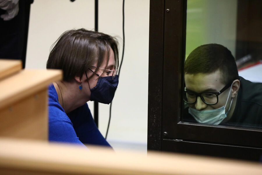 Московский окружной военный суд начал рассматривать дело 20 марта 2019 года. Виктору и его «подельнику» Юлику (Юлию Бояршинову) вменяли статью 205.4 УК РФ (организация террористического сообщества и участие в нем). Женя ходила на все суды. В какой-то момент ее допустили к участию в судебных заседаниях в качестве общественного защитника. И сама Женя, и Виктор считают это чудом: «Когда начался суд, мы решили попробовать заявить защитника наряду с адвокатом. У меня нет юридического образования, моя кандидатура была больше технической. Был такой расклад, что сначала Витя заявляет меня, суд не соглашается, и тогда Витя заявляет подругу с юридическим образованием — не сможет же суд во второй раз отказать. И вот я иду утром, думая, что меня не допустят. Витя заявляет ходатайство, прокурор возражает, судья что-то у меня спрашивает и уточняет: “Какие отношения у вас?” — “Дружеские”, и все так весело улыбаются. И суд говорит: “Да, допускаем”, даже не уходя в совещательную комнату. Они объявляют перерыв на час, а мы стоим болтаем рядом с клеткой. После перерыва я сажусь за стол к адвокату — и с этого момента у меня начинается новая жизнь».