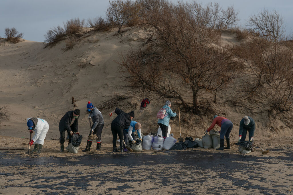 «15 декабря я сидела на работе, был примерно полдень, когда Тим сказал: “Мам, танкеры столкнулись, был разлив мазута”, — вспоминает Таисия. — Я стала быстро мониторить паблики — оказалось, срочно нужны люди, чтобы убирать мазут с пляжа в Джемете. Поначалу думала, поедем помогать на выходных, но, увидев это сообщение, не выдержала, закрыла студию — и мы помчались».