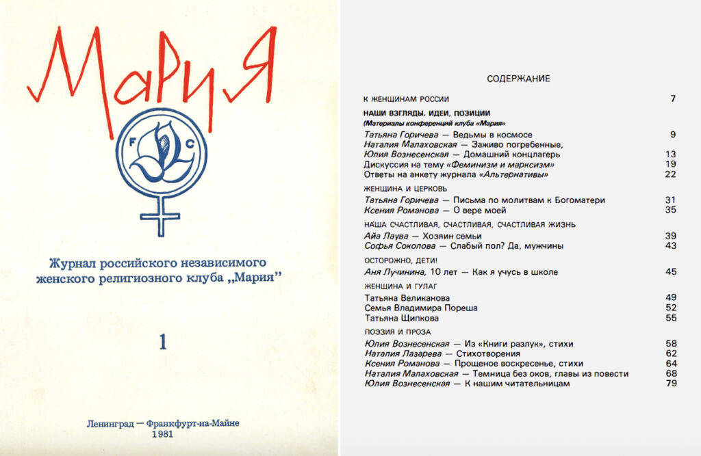 Зимой 1980 года ленинградская диссидентка Наталия Малаховская собирала материалы для первого выпуска женского самиздатовского альманаха «Мария». Когда ей потребовалось лечь в больницу, писательница передала черновики текстов коллеге по редакции Юлии Вознесенской. На квартире той вскоре прошел обыск. Все материалы для «Марии» были изъяты.