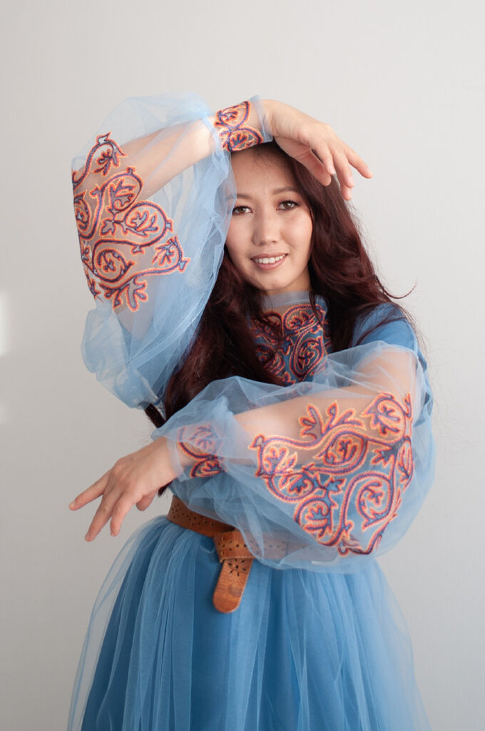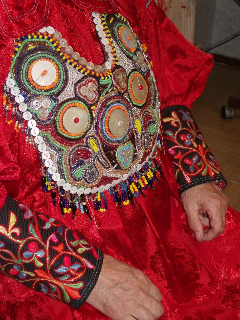Айхыс в платье с вышивкой собственной работы. Фото: личный архив героини